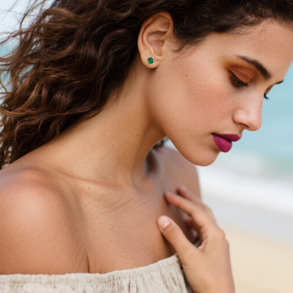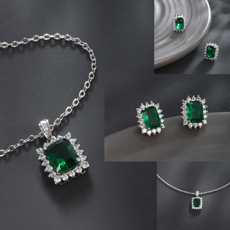 Elegant Retro Geometric Square Zircon Inlaid 24K Gold Plated Earrings and Pendant Set Gem Jewelry Set